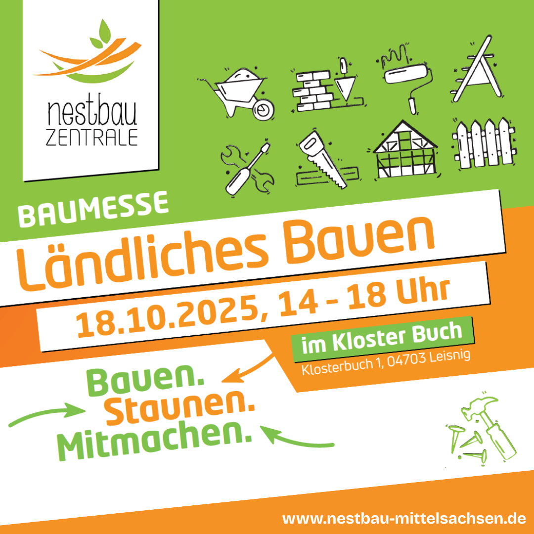 Mittelsachsen. Bauen. Staunen. Mitmachen! – Unter diesem Motto lädt die Nestbau-Zentrale Mittelsachsen am Samstag, den 18. Oktober 2025 zur Messe…